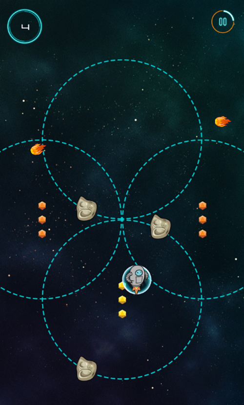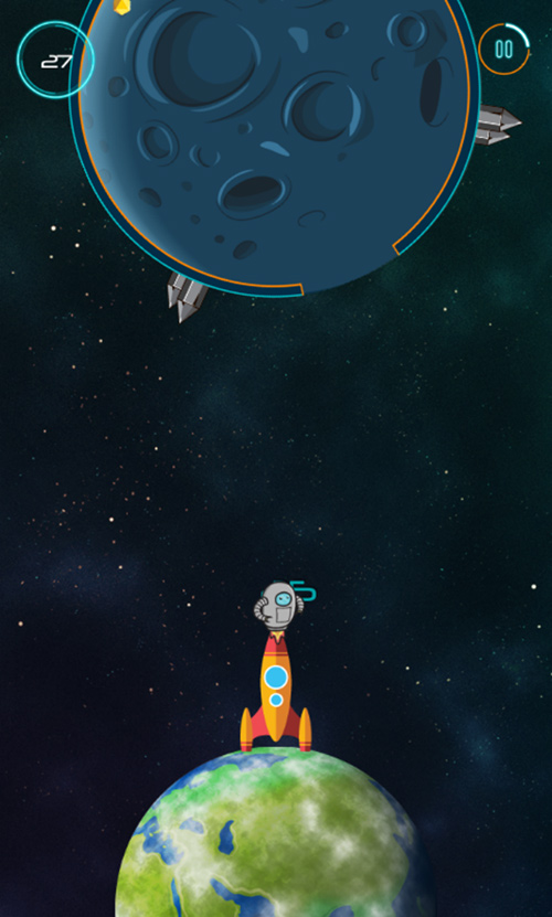 With the help of your equipped rocket thrusters, make your way from planet to planet, collecting ions while avoiding asteroids, meteor showers, enemies, and other interstellar obstacles. How many solar systems can your conquer with the help of your intrepid robot?