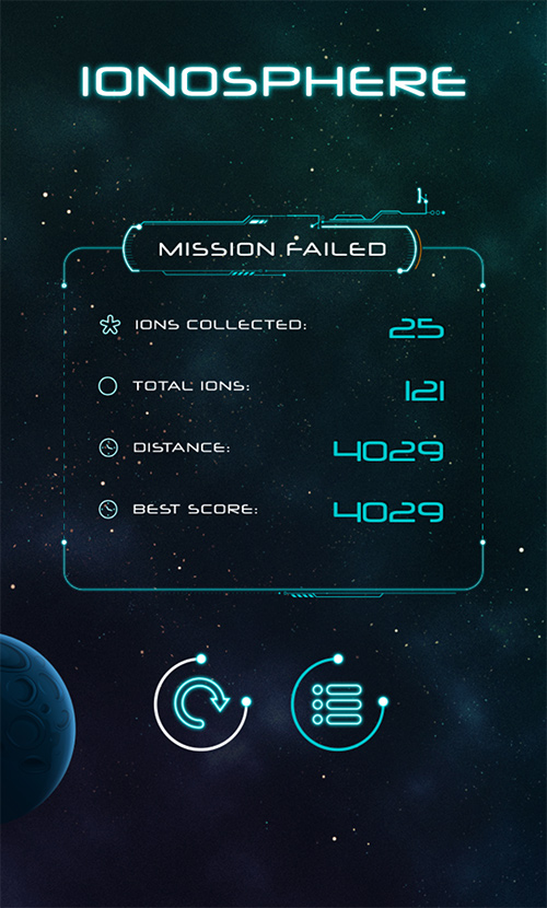 Ionosphere was built with the Cocos2d-x framework, Adobe Photoshop, and Adobe Illustrator. It's available through Google Play for Android devices and the Apple Store for iOS devices. It's no longer being actively maintained, and will be removed from those platforms as compatibility expires.